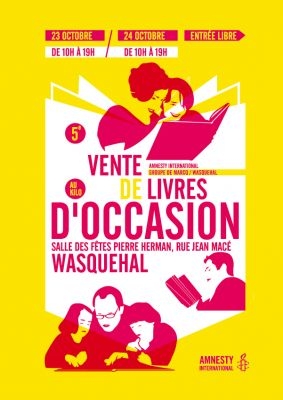 Le groupe Amnesty International de Marcq-Wasquehal organise les vendredi 23 et samedi 24 octobre 2015 sa 5e vente de livres d'occasion. Sciences, histoire de l'art, littérature, droit, architecture, contes pour enfants… Il y en aura pour tous les goûts, à des prix toujours aussi abordables ! Tous les bénéfices réalisés seront consacrés aux actions d'AI en faveur des droits de l'Homme dans le monde.