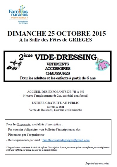 2ème vide dressing organisé par "Familles Rurales" de Grieges