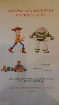Nous organisons une bourse aux jouets et puériculture le Dimanche 22 Novembre 2015 à la salle des fêtes de Saint Aubin des Coudrais de 10h à 16h.