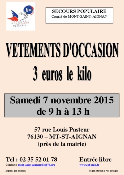 - Local du Secours Populaire - Près de la Mairie de MT-ST-AIGNAN 57 rue pasteur, 76130 MONT SAINT AIGNAN