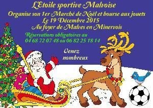 Marché de Noel et bourse aux jouets samedi 19 Décembre à Malves, le père noêl sera présent l'après midi. Venez nombreux!
