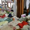 Intérieur: la table d'1, 80m 5€ et 3€ le portant ou le mètre linéaire.