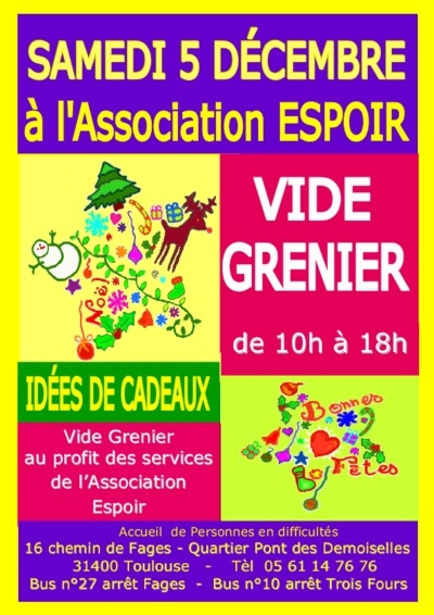 VIDE GRENIER DE NOEL AU PROFIT DES SERVICES DE L'ASSOCIATION ESPOIR.