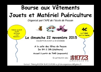 Bourse aux vêtements, jouets et materiel puériculture Pessan