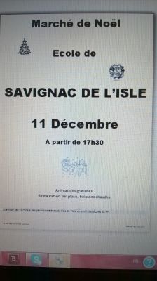 Marché de Noël organisé par l'amicale des parents du Bois de L'Isle le vendredi 11 décembre à partir de 17h30 à l'école de Savignac de l'Isle.