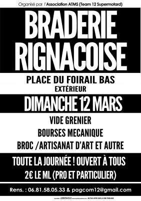La braderie rignacoise reprend sont rythme, cette braderie est ouverte à tous vide grenier brocante bourse mécanique objet d'art; etc etc.