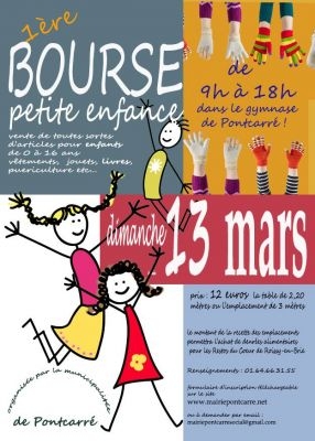 La Municipalité de Pontcarré organisera le 13 mars prochain une BOURSE PETITE ENFANCE de 0 à 16 ans au Gymnase Roger Crozet.