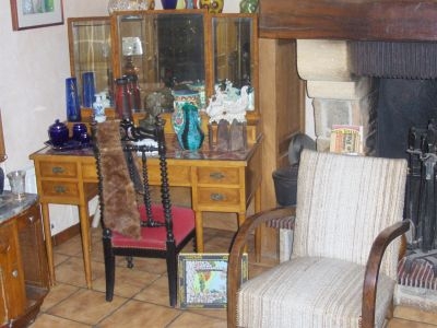 vaisselle ancienne et vaisselle courante, bibelots anciens et nouveaux, cuivres, linge de maison, rideaux anciens et nouveaux, couvre lit, draps, meubles en chêne : enfilade, bahut, chaises paille, meuble appoint, meuble télé