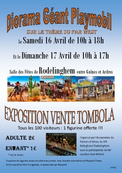 Diorama PLAYMOBIL sur le thème du FAR WEST le samedi 16 avril de 10h à 18h et le dimanche de 10h à 17h.
