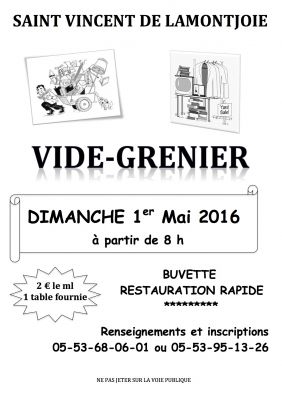 Le vide grenier aura lieu à l'extérieur de la salle des fêtes si le temps le permet, si non dans la salle des fêtes