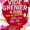 Vide-greniers organisé dans le cadre de la fête de quartier des Amandiers, nombreuses activités toute la journée et pour tous les âges : jeux gonflables, restauration, musique...