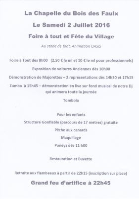 Foire à tout et Fête du Village La Chapelle Du Bois Des Faulx