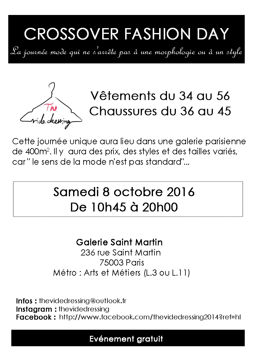 Le bon plan shopping mode de cette fin d'année c'est pour le 8 octobre avec le Crossover Fashion Day organisé par The vide dressing.