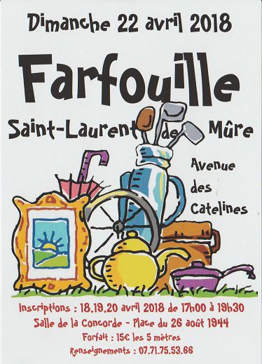 La 13ème grande Farfouille de printemps de Saint Laurent de Mûre aura lieu le 22 avril 2018 dans la zone artisanale de Terre Valet, avenue des Catelines à Saint Laurent de Mure(69720) de 5h00 à 17h00.