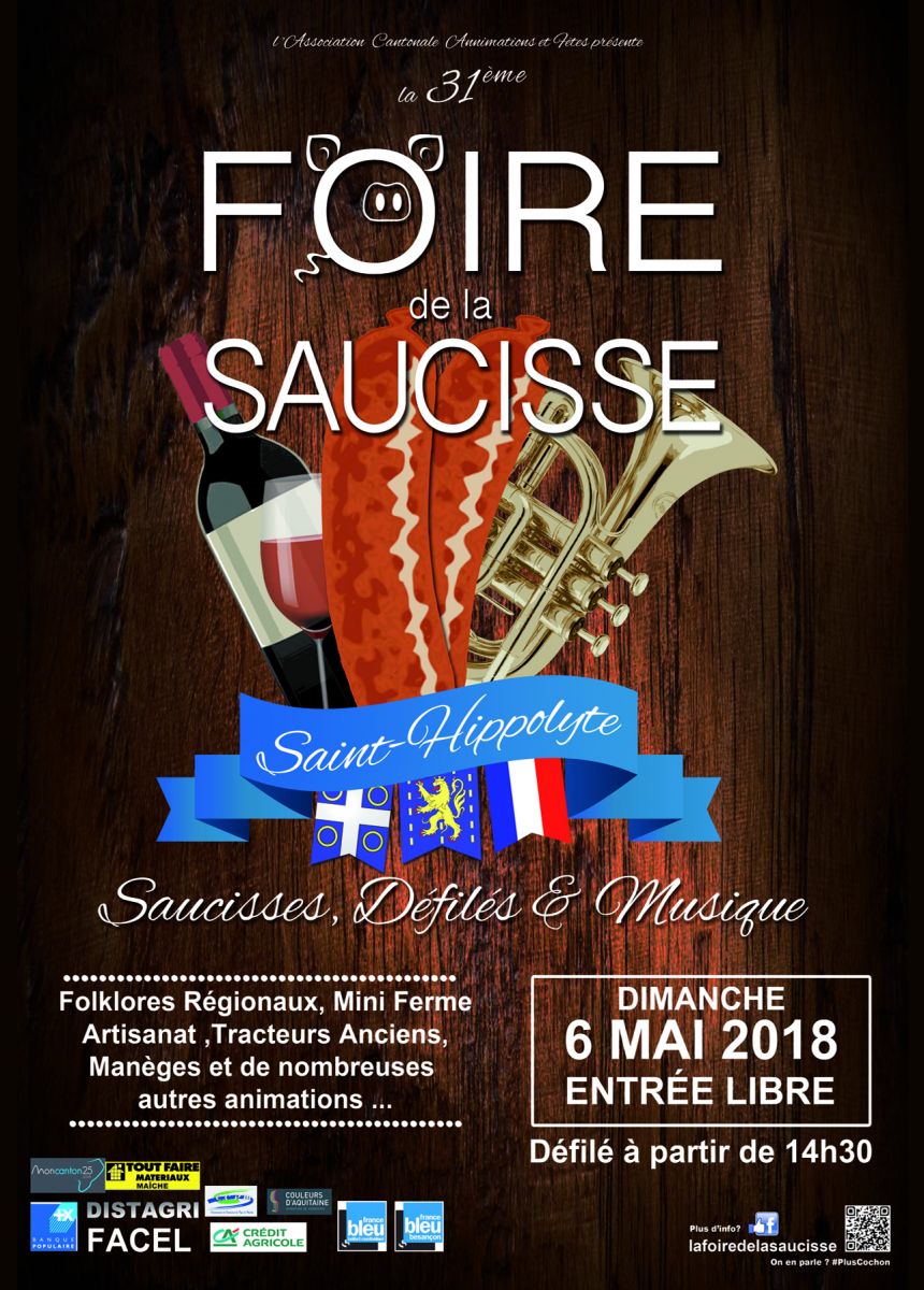 Mais qu'est ce qui attire donc autant de visiteurs ? Le défilé bien sûr. La saucisse aussi ! Confectionnée par les deux bouchers du coin, la belle de Saint-Hippolyte prend sa place entre la saucisse de Montbéliard et celle de Morteau. Odorante et goûteuse, elle est préparée dans le plus grand secret. Si l'on ne connaît pas le dosage, ni la composition des assaisonnements, on peut être assuré qu'elle est faite de maigre de porc franc-comtois. Tout est naturel chez la Saint-Hippolyte. Salée au sel de cuisine, garantie sans conservateur, longuement fumée sur un lit de sciure de résineux, elle possède un fumet particulier et inégalable.