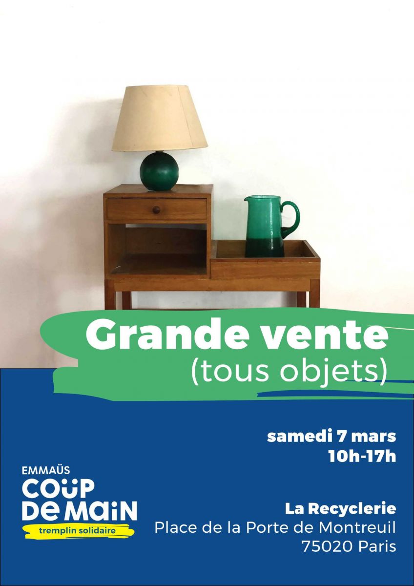 La prochaine grande vente Emmaüs Coup de main aura lieu le samedi 7 mars de 10h à 17h.