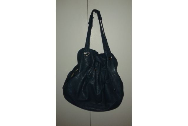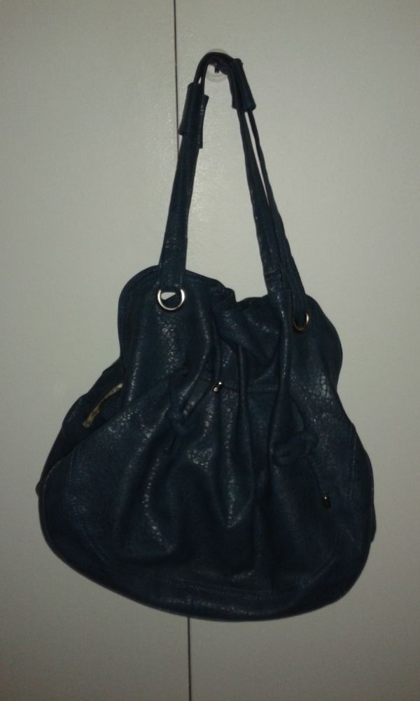 Grand sac turquoise, simili cuir avec léger relief, porté épaule