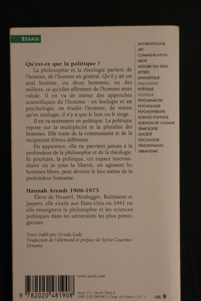 Qu'est-ce que la politique ? Hannah Arendt