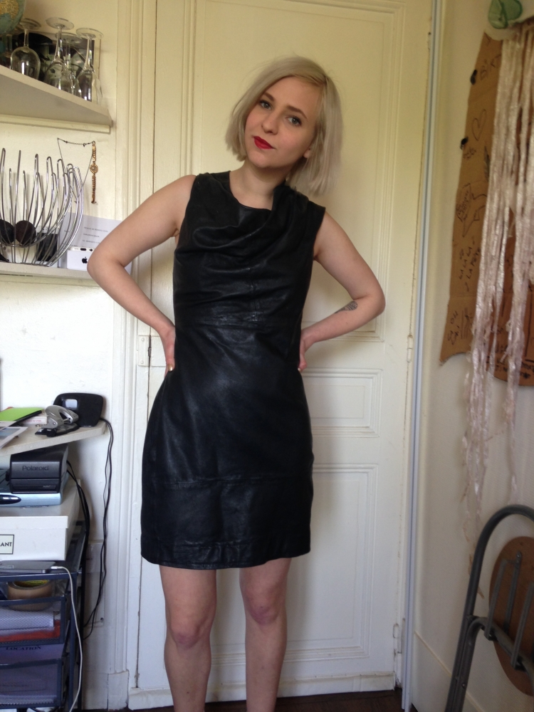Robe en cuir de marque All Saints, très peu portée, joli détail au niveau du col. Robe habillée.