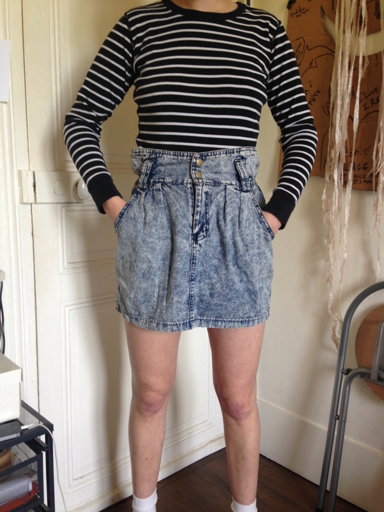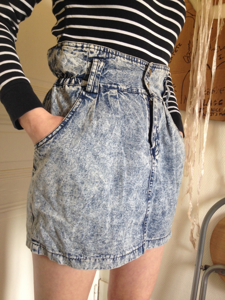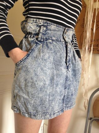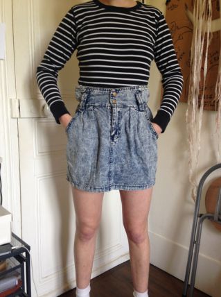 Jupe en jean 80's. Si elle est usée, c'est parce qu'elle doit l'être ;)
