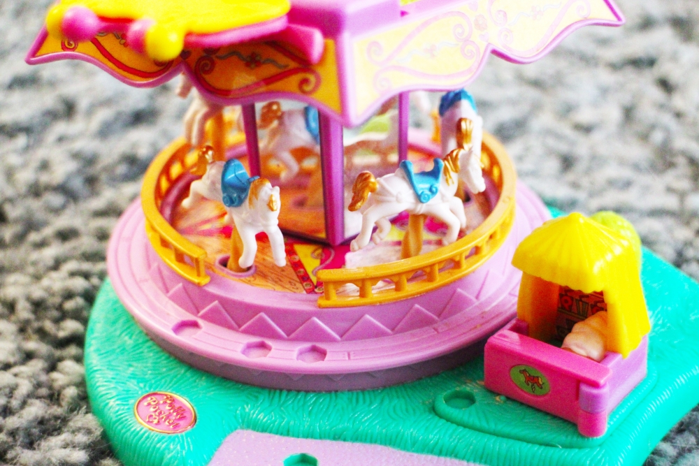 Manège Polly pocket en super état, il lui manque juste une petite porte sur le toit , la manivelle qui fait tourner le manège fonctionne très bien !