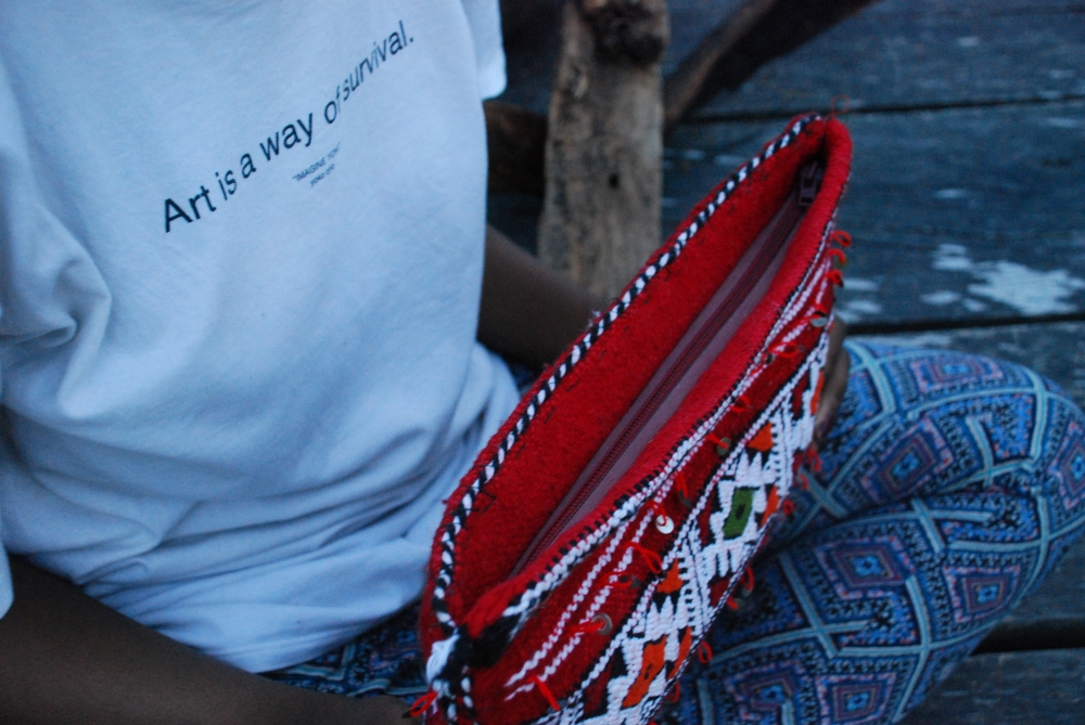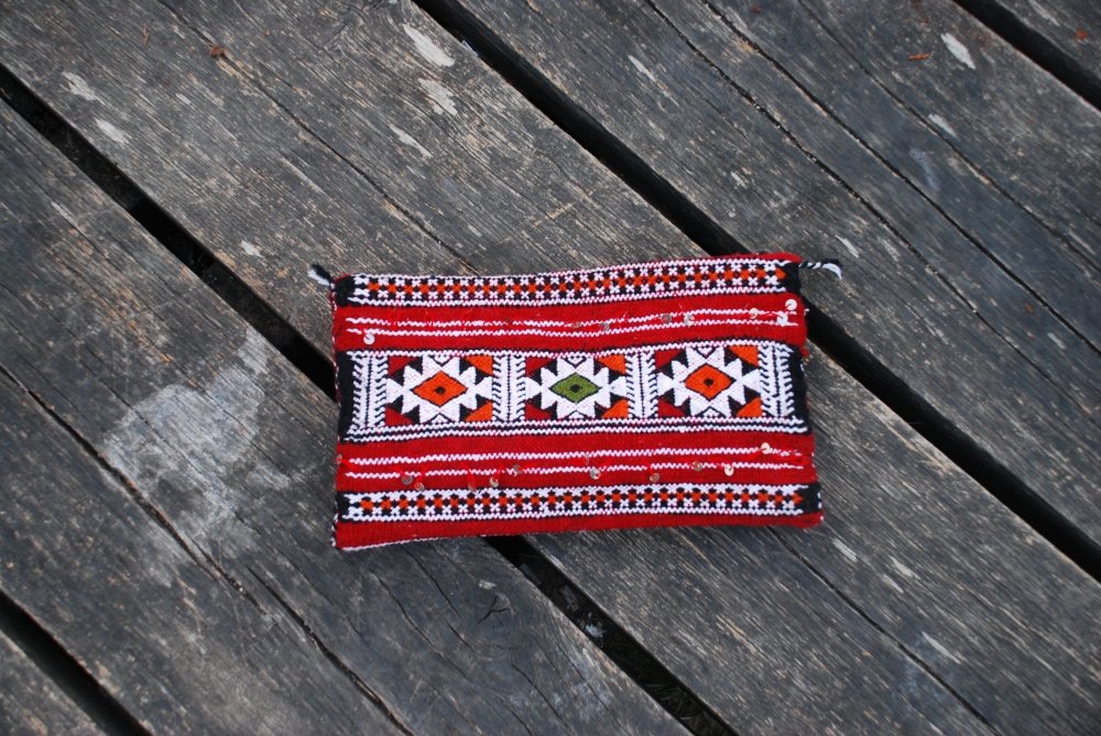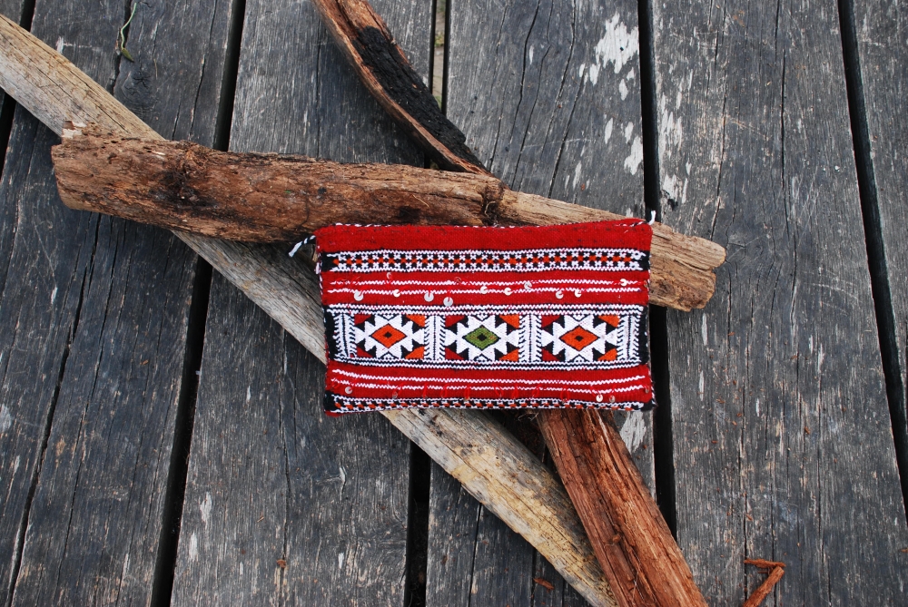 Pochette rouge berbère faite main avec des tapis berbères vintage.