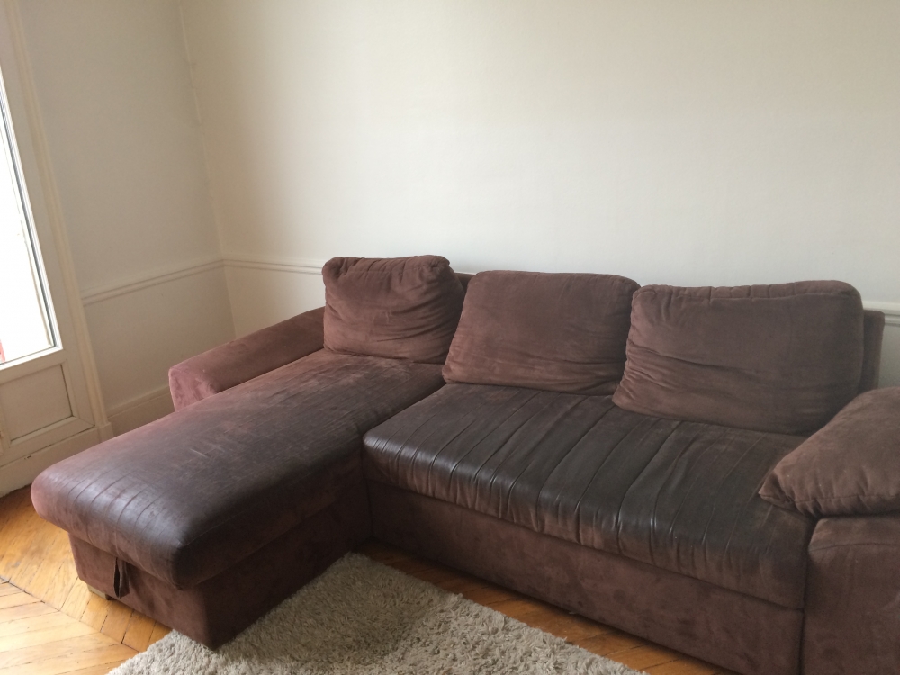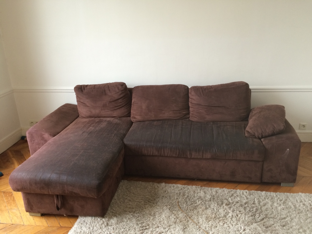 Bonjour, Pour cause de déménagement, nous nous séparons de notre vieux canapé. Il est usé, taché et le lit n'est plus utilisable, mais l'assise reste très confortable. Recouvert d'une couvre canapé, il a encore de beaux jours devant lui..