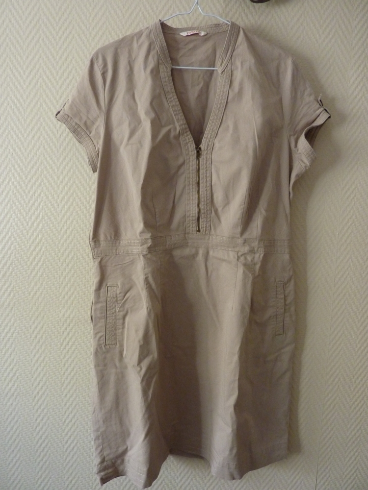 Robe beige avec fermeture sur le côté et au niveau du décolleté (pratique pur allaitement).