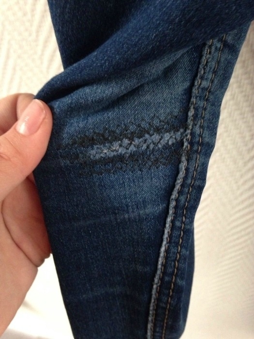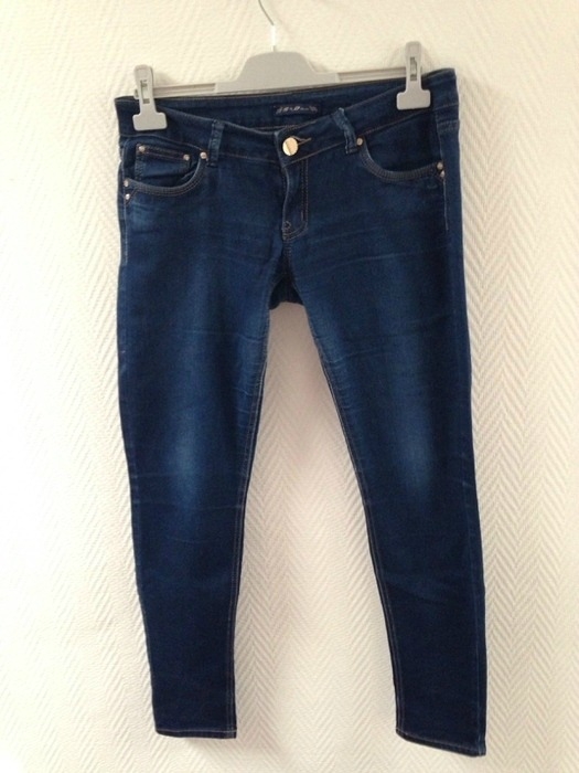 Jeans bleu foncé sur les fesses aux poche il y a des nœuds bon état mais à l'intérieur Couture repris par une vrai couturière donc sa ne se voit pas !