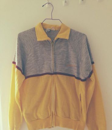 Veste Vintage Adidas Jaune et Grise avec une ligne bordeaux. Deux poches à l’extérieur et une poche à l'intérieur. Tres bon état