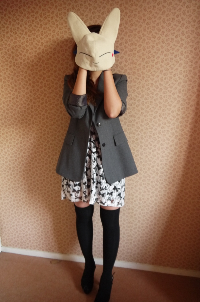 Bonnet pour adulte représentant Kodacha Babbit (lapin), oreilles de lapin, petit coeur sur la joue, ailes bleues derrière. Neuf jamais porté avec étiquette, en très bon état