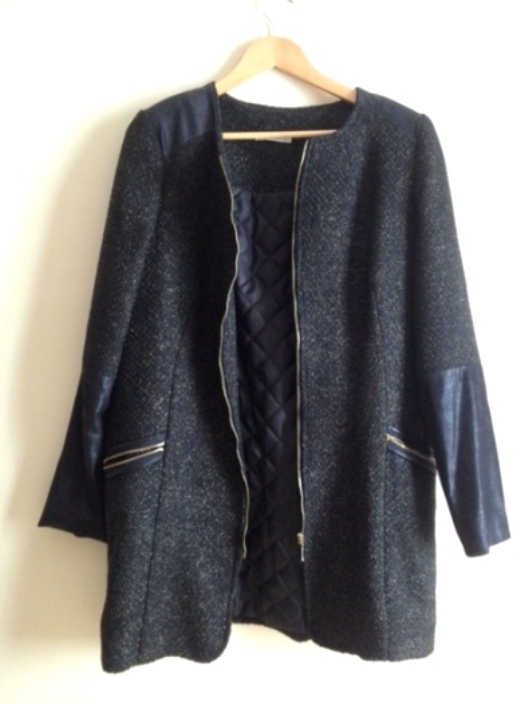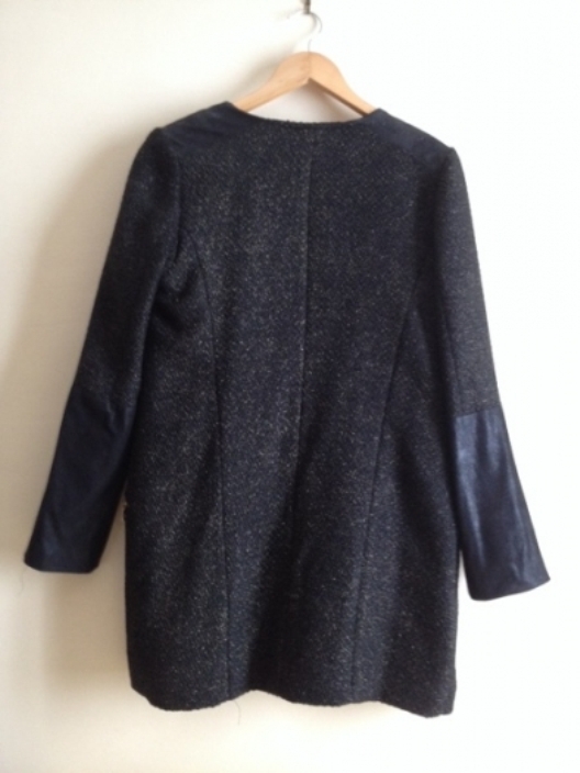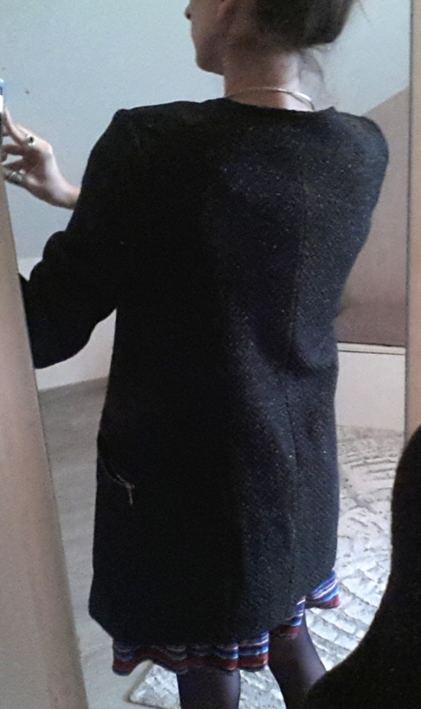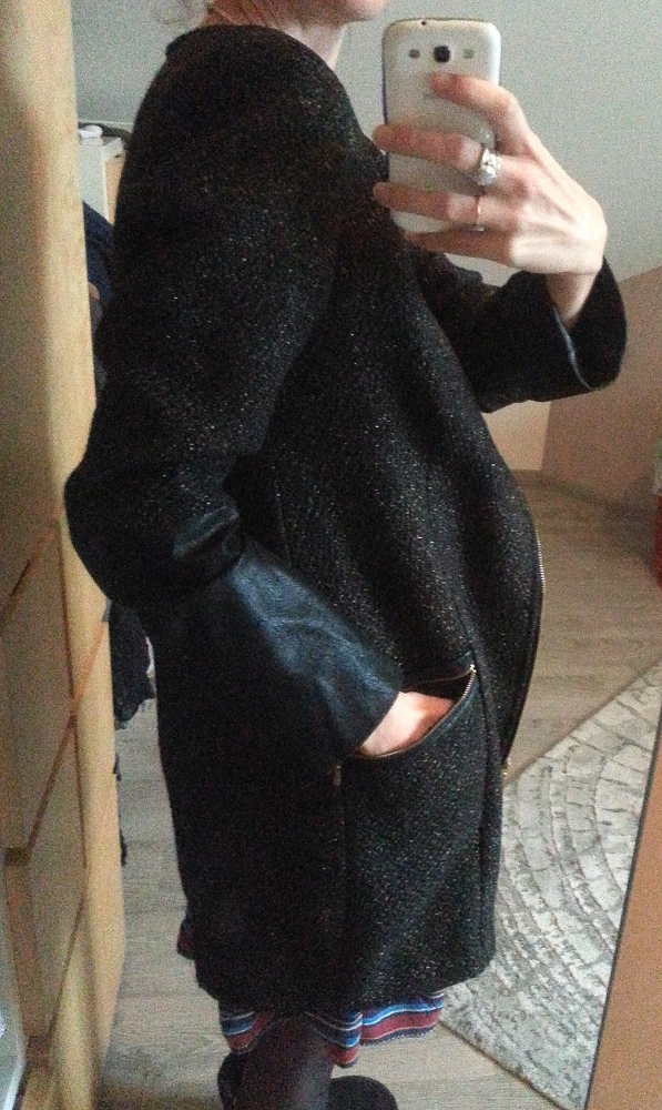 Manteau noir bi matière entièrement doublé, 2 poches latérales zippées