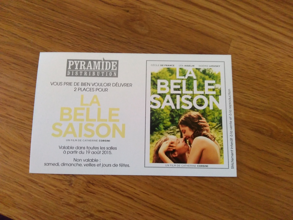 2 places de cinéma pour " La Belle Saison "