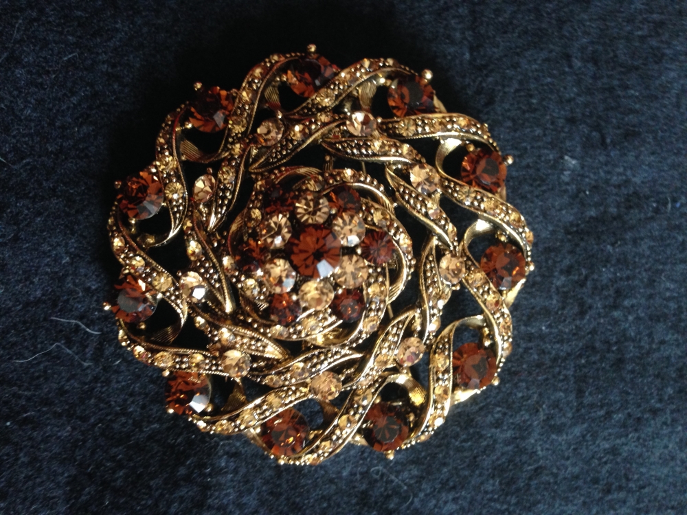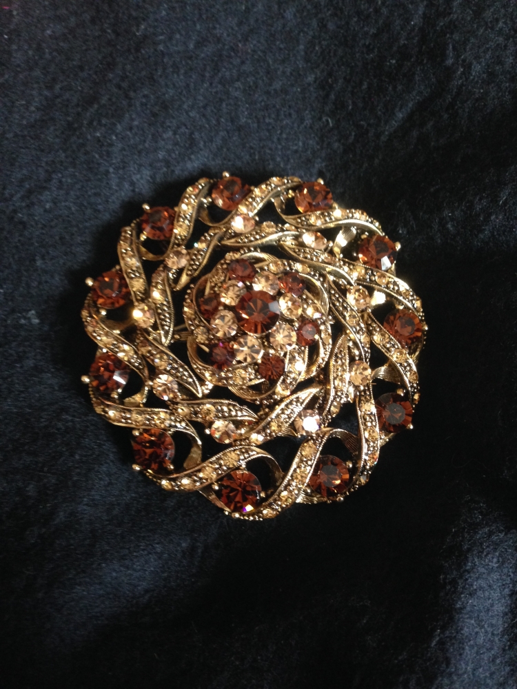 Broche métal or , avec crochet pouvant la transformer en pendentif, couleur champagne et whisky.
