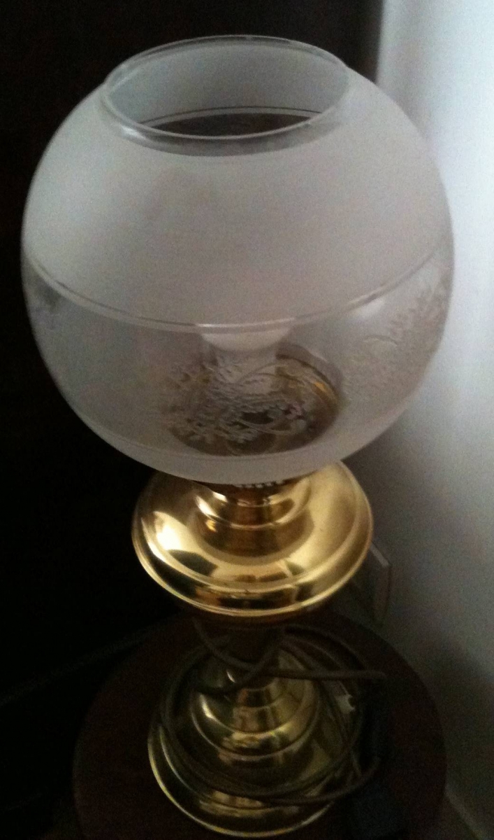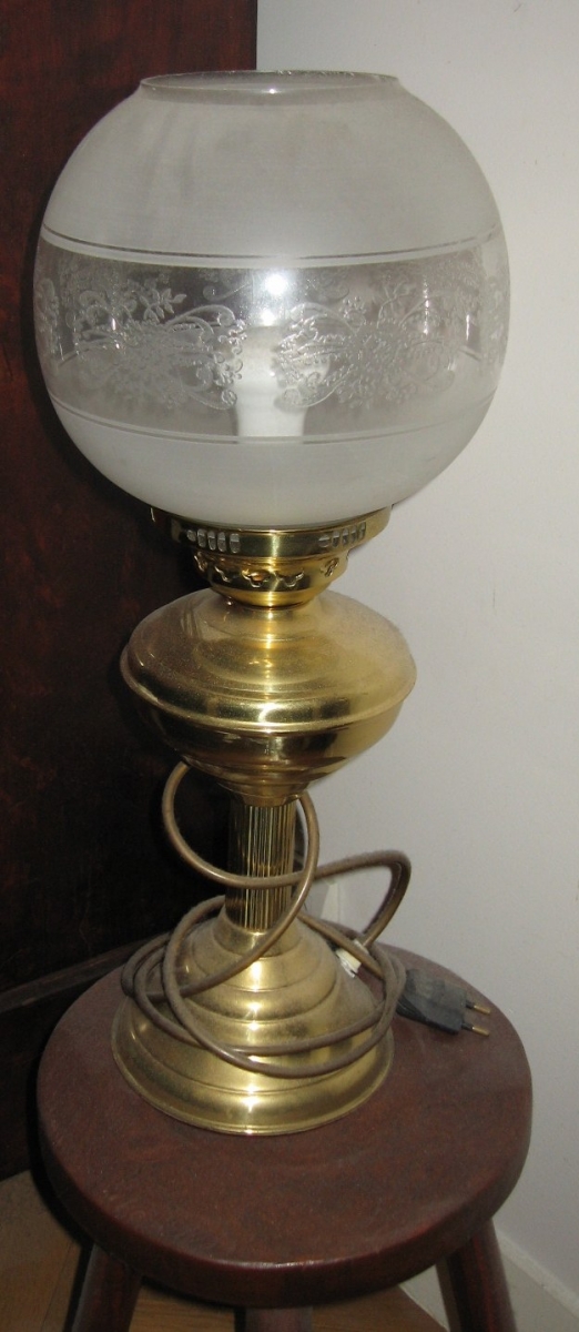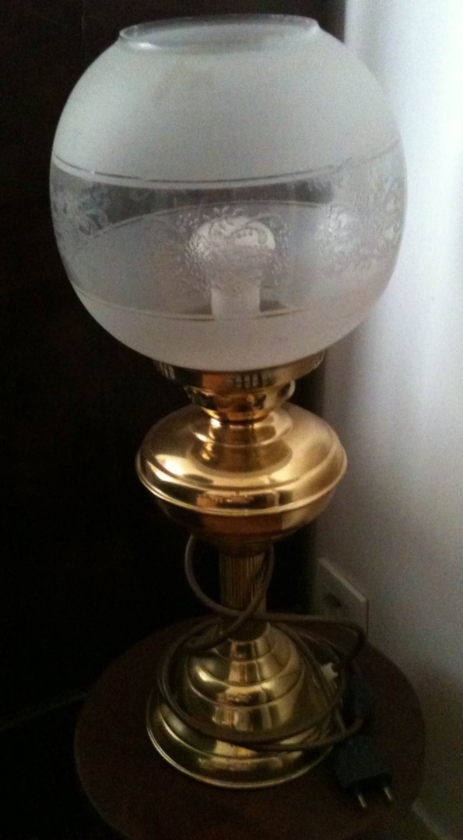 Lampe acquise en Angleterre (alimentation en électricité et cordon système français), fonctionne bien, elle fait 49 cm de hauteur sur 20 cm de largeur environ.
