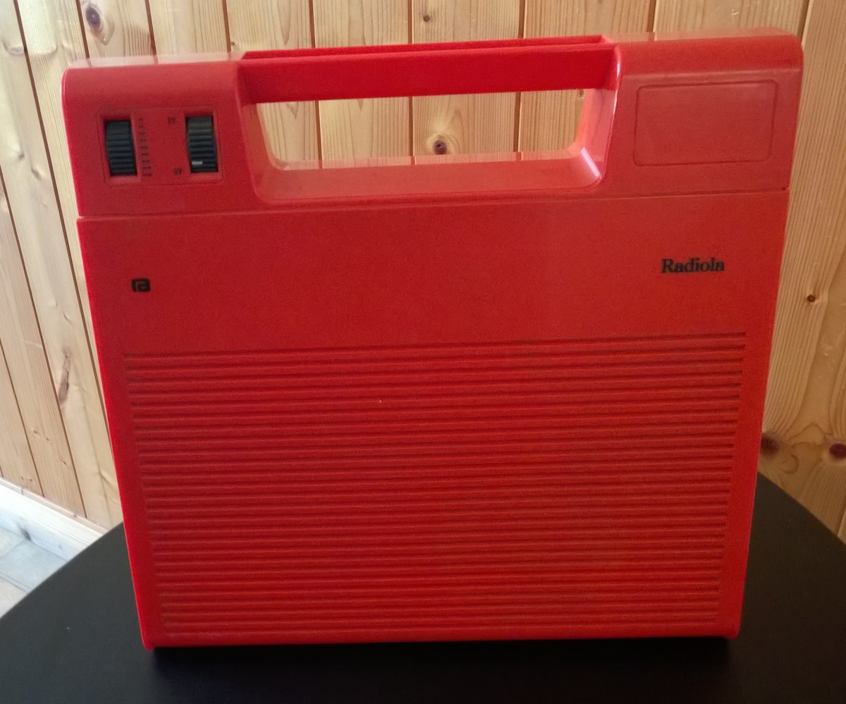 Tourne-disque vintage orange. Il fonctionne, mais le saphir est à changer. Et il manque le support pour les 45 tours.