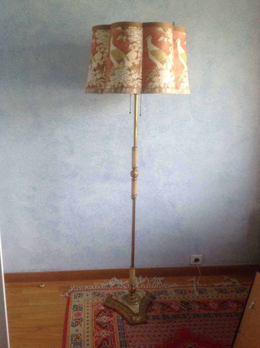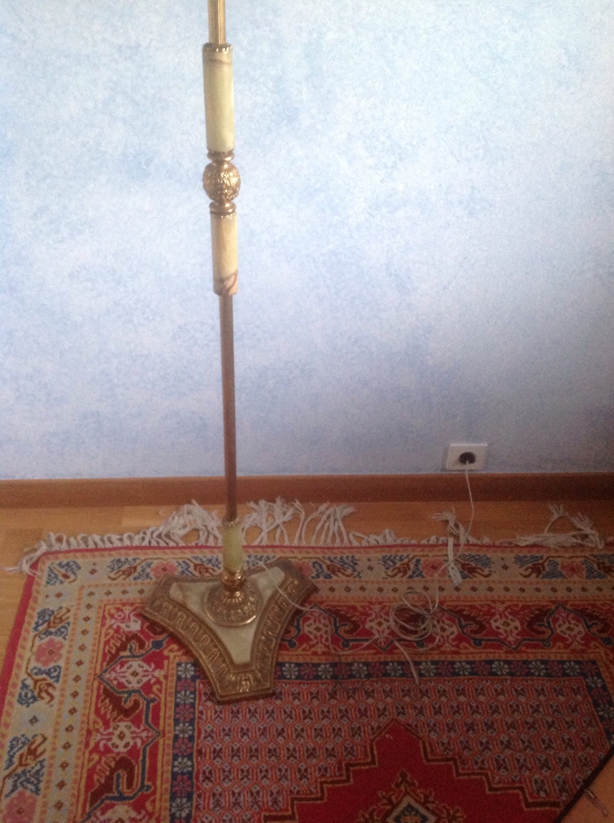 Pied triangulaire stable. Bronze et onyx. Avec son abat- jour.