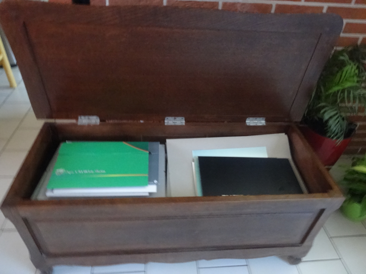 le coffre est de bonne qualité (chene foncé)mais a besoin d'une remise à neuf