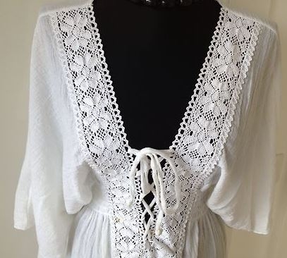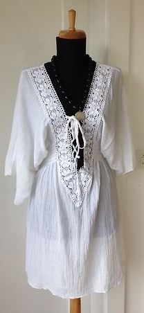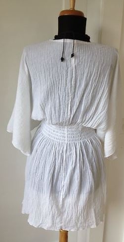 Tunique longue style Bohème WATER WATER, de couleur blanche, 100% coton crépon, de taille 38