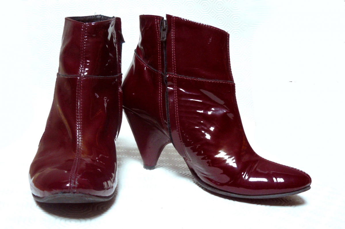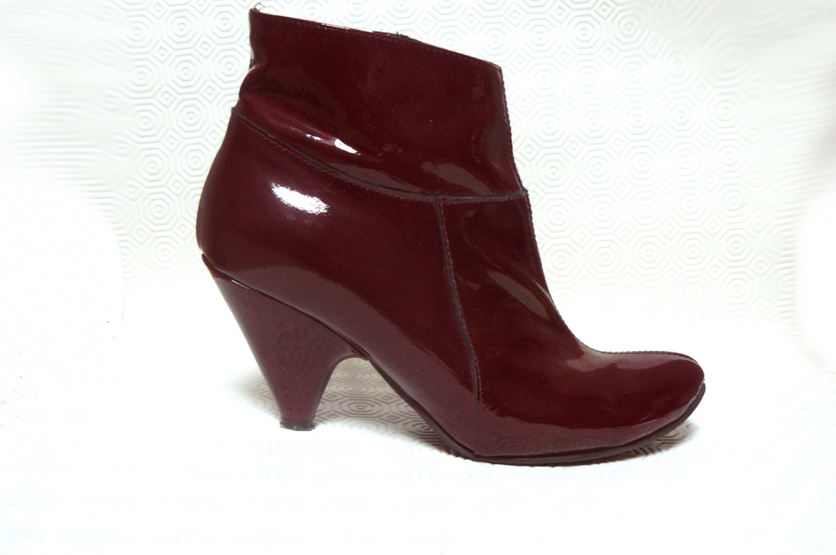Bottines à talons Kookaï zippées en cuir verni rouge bordeaux. Très bon état.