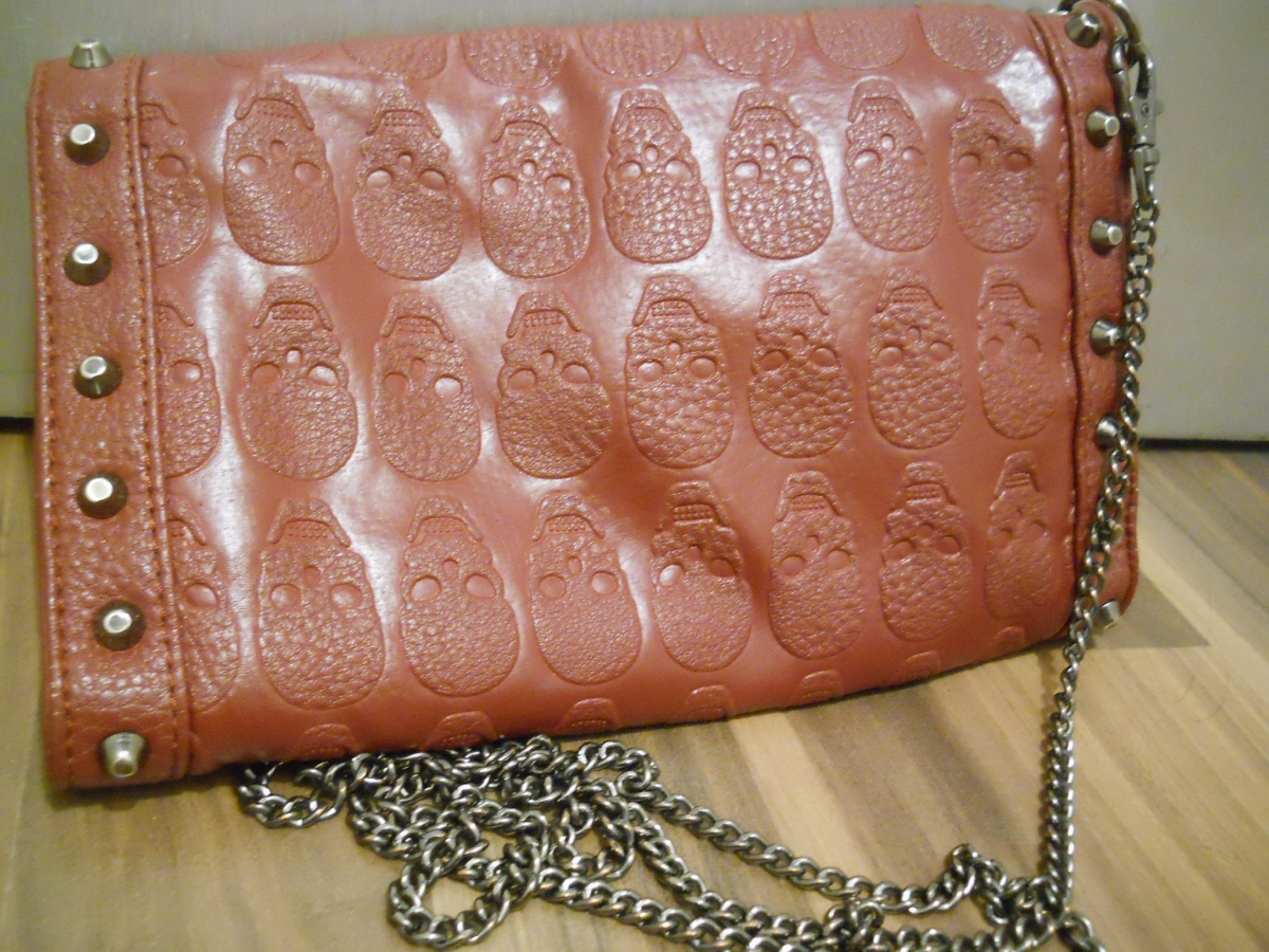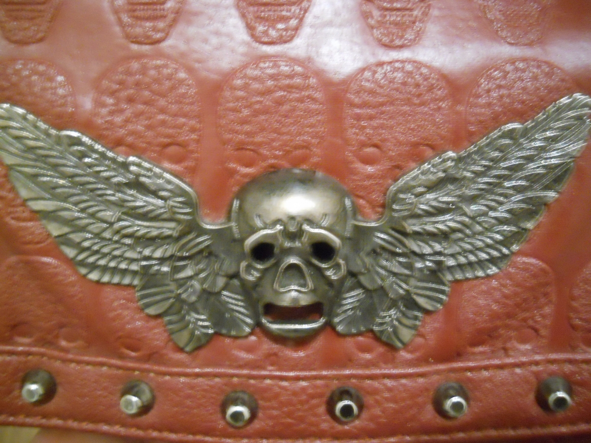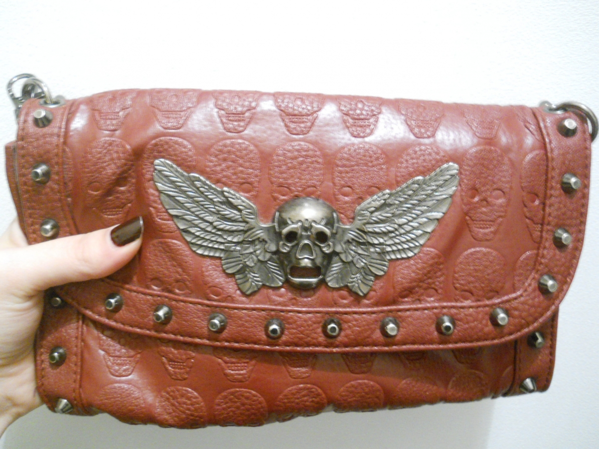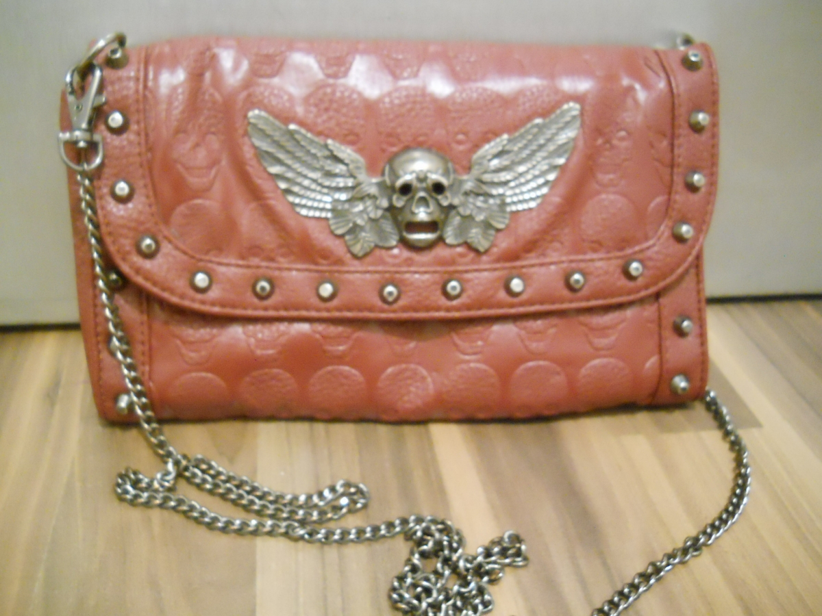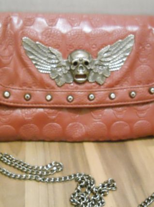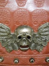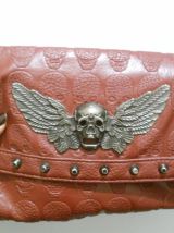Pochette bandoulière avec chaines tête de mort bordeaux