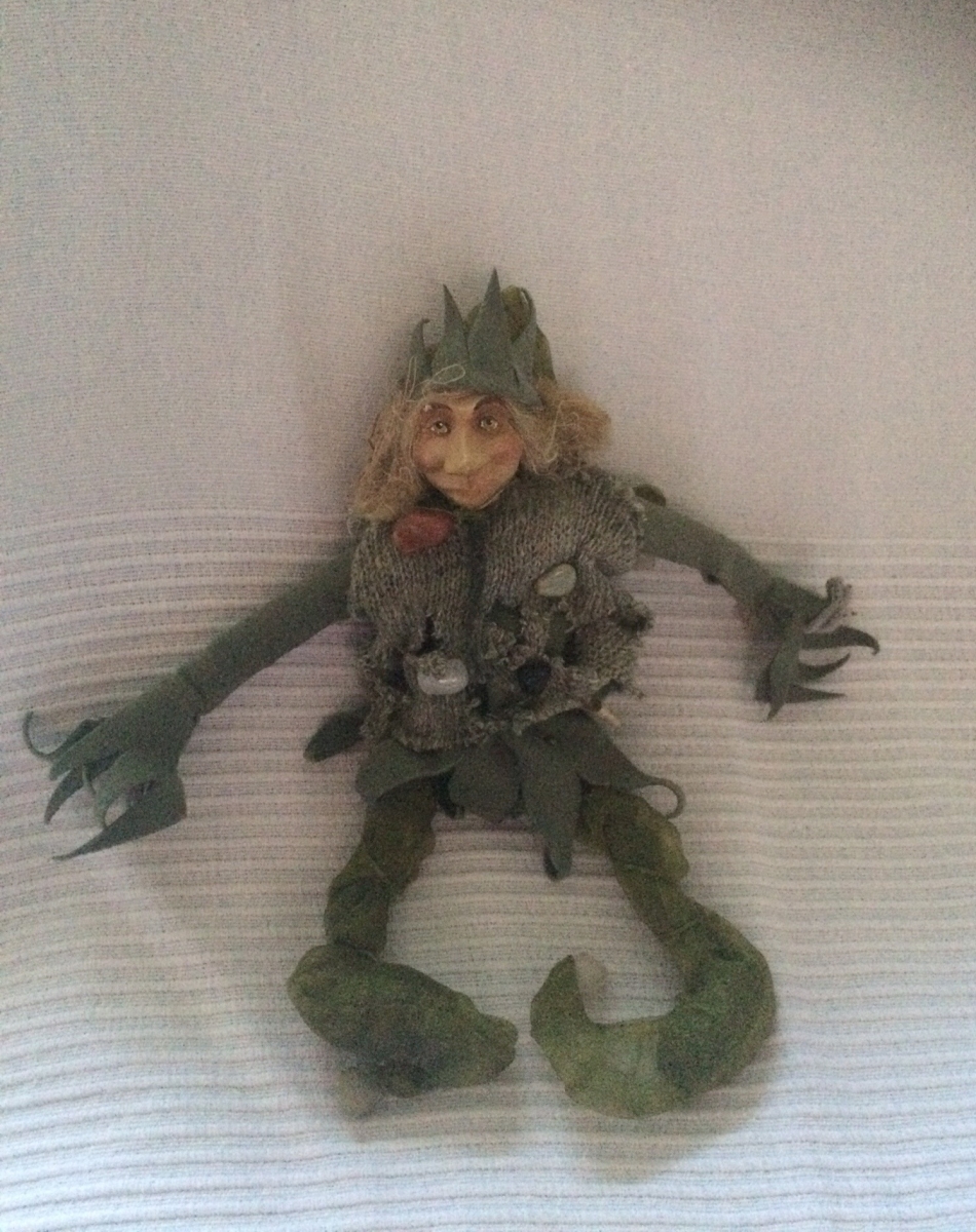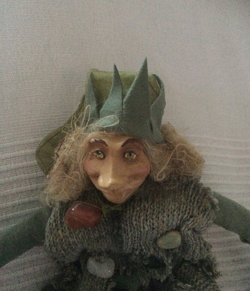 Poupée Elfe Chiffon et céramique avec pierres semi précieuses.