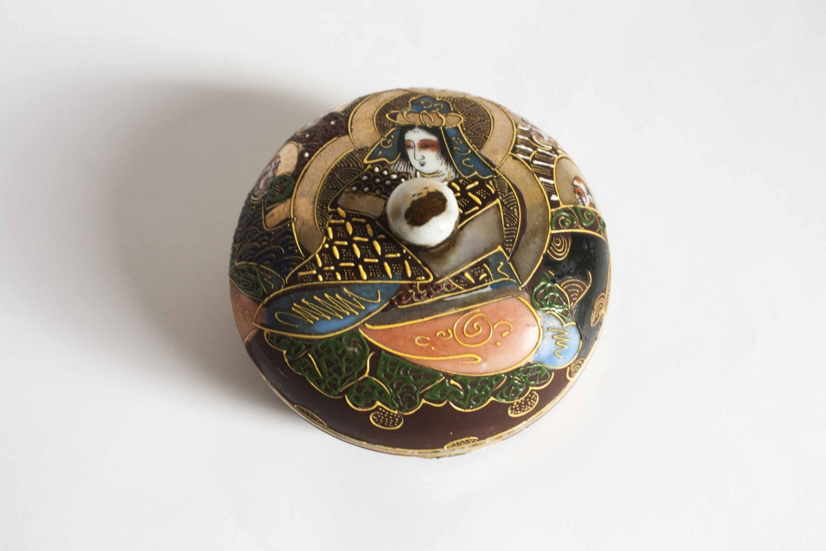 bonbonnière en porcelaine de Satsuma avec reliefs