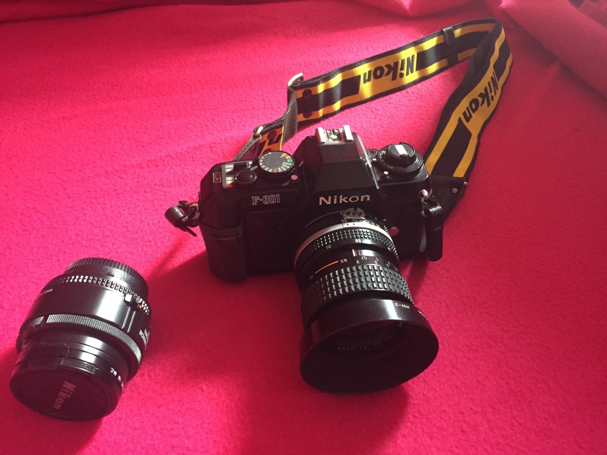 Appareil photo argentique Nikon f 301 et objectif