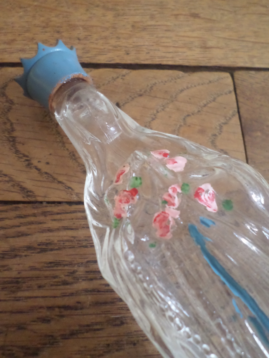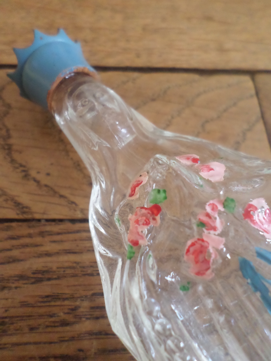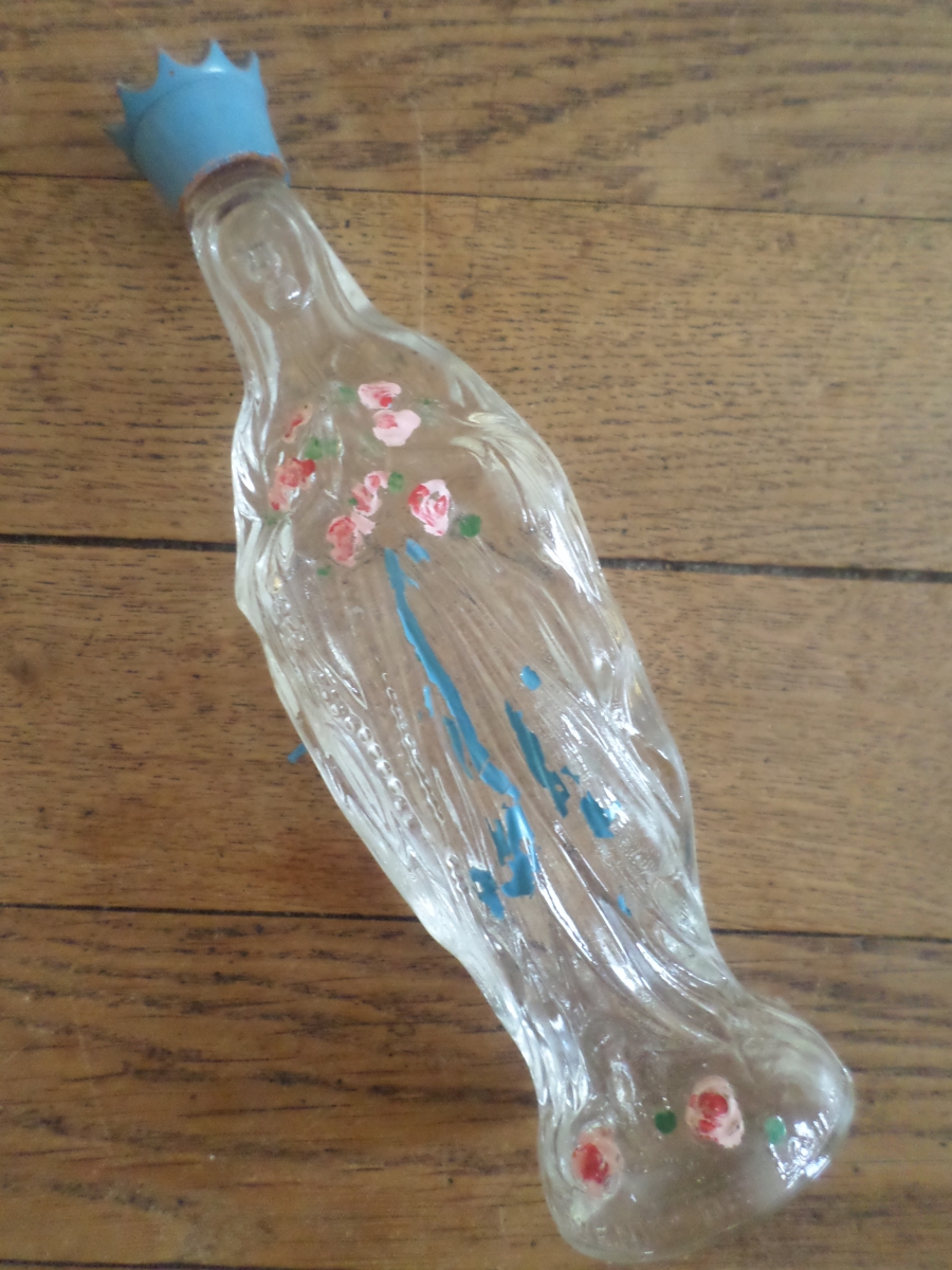 Petite statuette "souvenir" de Lourdes, représentant la Vierge Marie. Look vintage et peinte, elle contient encore une bonne moitié d'eau bénite.