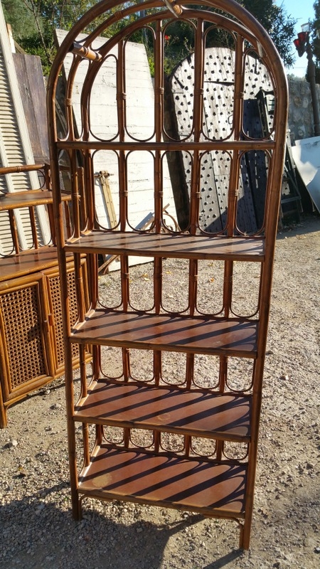 etagere mural ou sur pied metal et rotin 1950 a 70 ,8