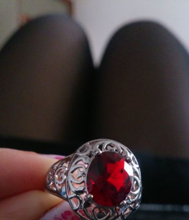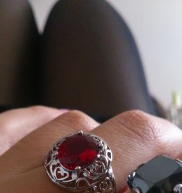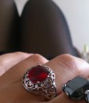 Bague achetée il y a deux semaines sur un site internet mais malheureusement elle est trop grande pour mes petits doigts. Rouge et argent 925.