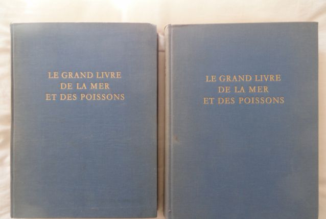 Vends « Le grand livre de la Mer et des Poissons ». 1952. État : Bon. 2 tomes: 345 + 306 pages. Toile bleue, titres dorés. Nombreuses photos et illustrations en noir et blanc dans et hors texte. Cartonnage d'éditeurs. Couverture légèrement passée et dos légèrement défraichis. Intérieur frais. Union Européenne d'Editions. Godefroy Schmid et René Kister, Editeurs.