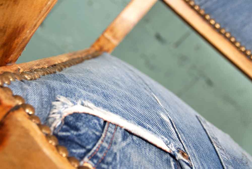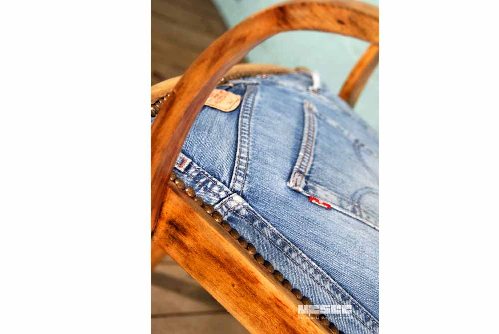 CHAISE BRIDGE "RAFAELA" assise et dossier restaurés jean's Levis 501
