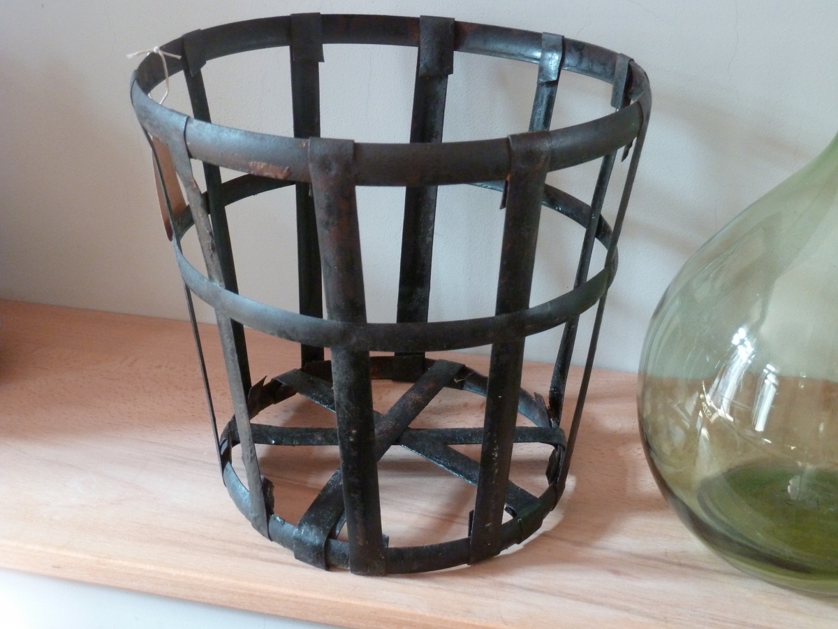 Ancienne corbeille qui protégeait les dame-jeanne, à utiliser en déco. Entièrement décapée, poncée, anti rouille.
